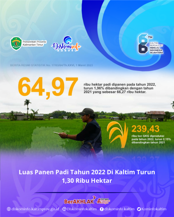 Luas Panen Padi Tahun 2022 Di Kaltim Turun 1,30 Ribu Hektar