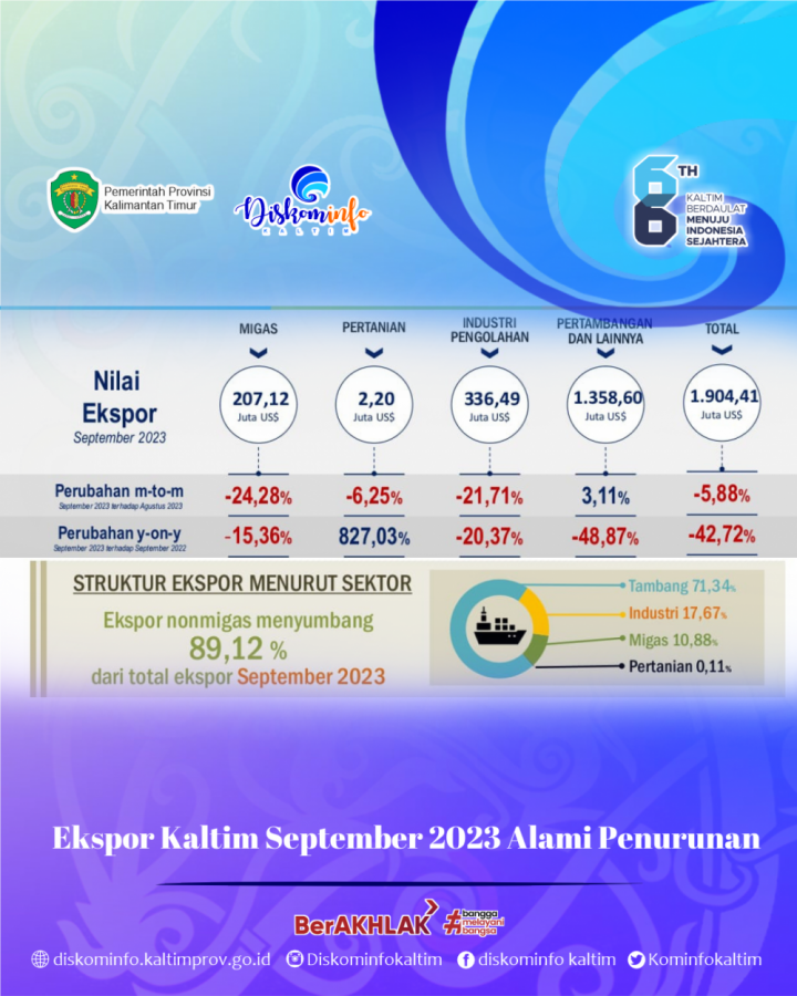Ekspor Kaltim September 2023 Alami Penurunan